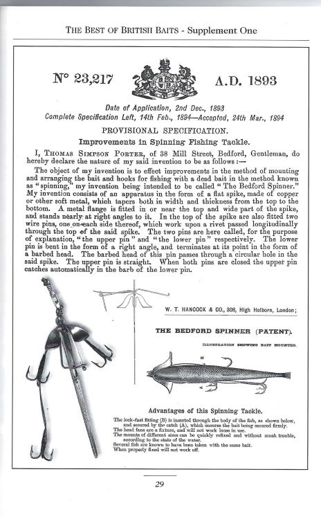 Archer Spinner – Milward-Bartleet 1910 Patent 5990 – (copied for research & education from Sandford’s ‘The Best of British Baits – Supplement One’ -1aa