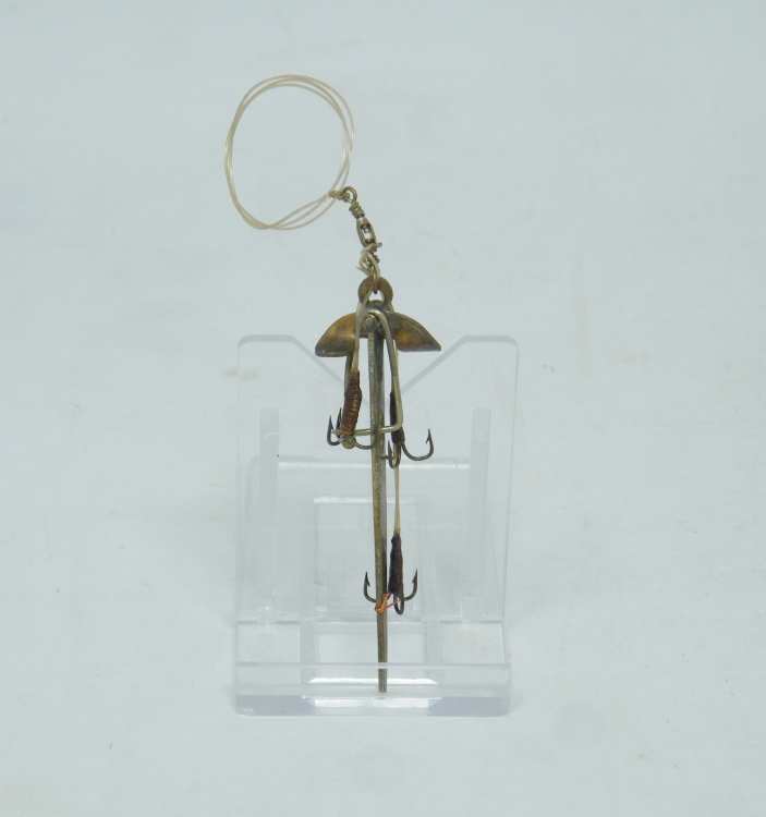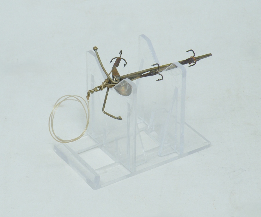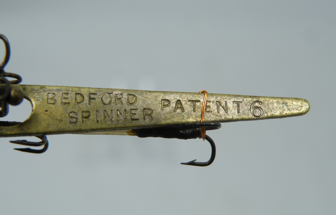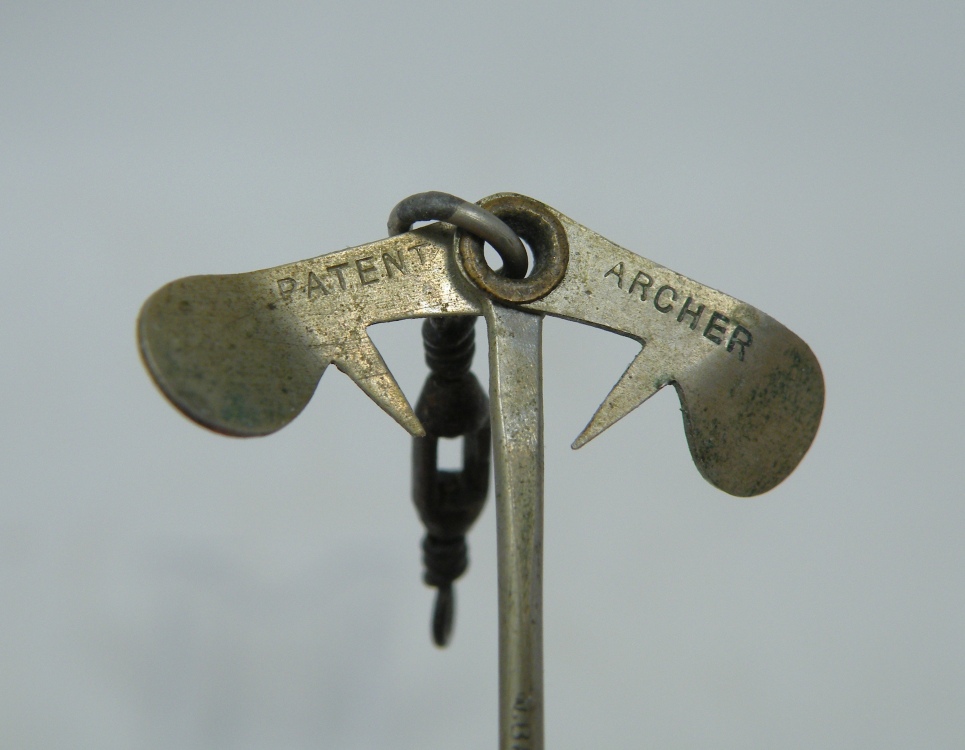 Henry Milward & Sons Ltd. – c.1910+ ”Archer Spinner” – 3.25” (not incl. ‘box swivel’ or hooks) – UNCOMMON hook rigging using tightly coiled flexible brass wire – 1 blade marked ”Archer” & the other marked ”New Patent July 1910” – 1cc