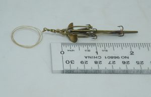 Henry Milward & Sons Ltd. – c.1910+ ”Archer Spinner” – 3.25” (not incl. ‘box swivel’ or hooks) – UNCOMMONhook rigging using tightly coiled flexible brass wire – 1 blade marked ”Archer’‘ & the other marked ”New Patent July 1910” – 1aa