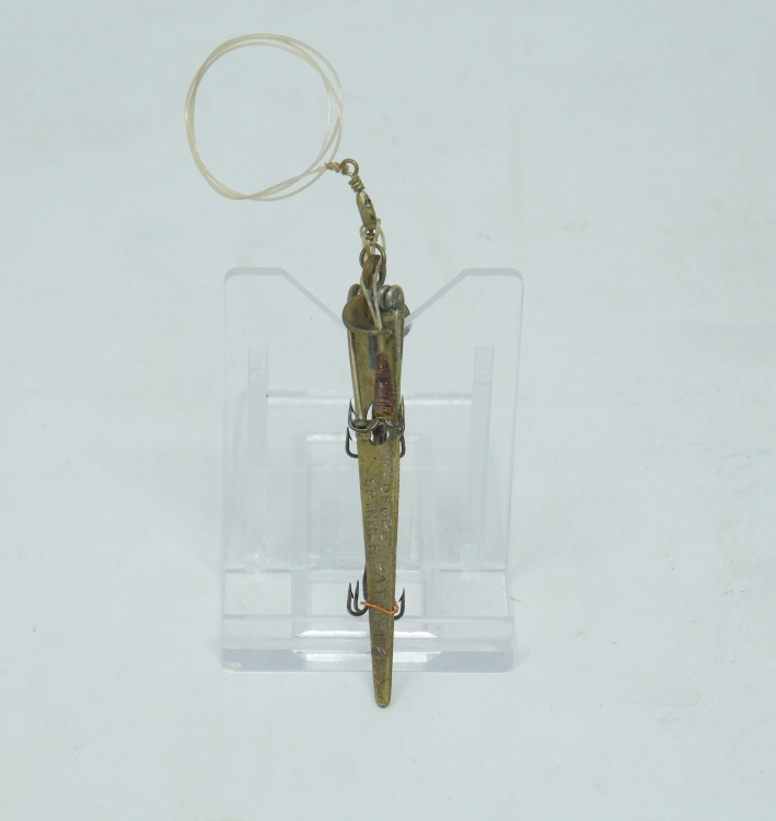 Henry Milward & Sons Ltd. – c.1910+ ”Archer Spinner” – 3.25” (not incl. ‘box swivel’ or hooks) – UNCOMMON hook rigging using tightly coiled flexible brass wire – 1 blade marked ”Archer” & the other marked ”New Patent July 1910” – 1bb