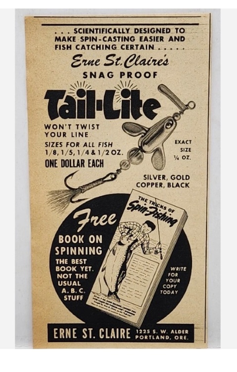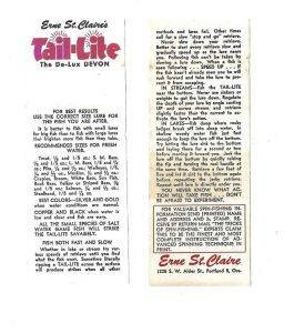 Devon Minnow – Erne St.Claire – correct original 2-sided TUBE PAPER (2.25”x6” unfolded) for ‘Tail-Lite Devon’ (both sides compiled into 1 scan – Front side on left & Back side on right) -1dd