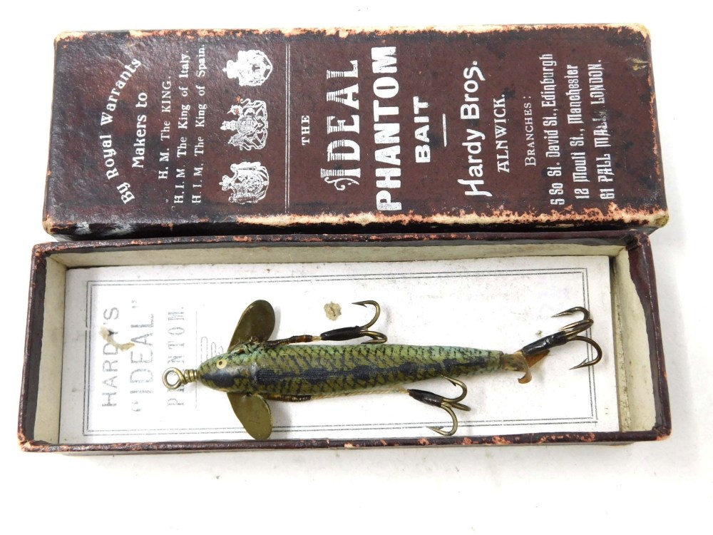 Hardy Brothers: 1920-c.1939 ”Ideal” Phantom Minnows (2”, 2.5”, 3” & 3.5” / ‘Ex-‘ to ‘Mint’, all look unused) – EXCEPTIONAL Group of 6 with 1 Phantom in Original Box – All are stamped with Hardy’s 1920 Patent # 155523. (Note the 3 beautiful wood boxes hand-crafted by my son Jason Robinson) – 1bb
